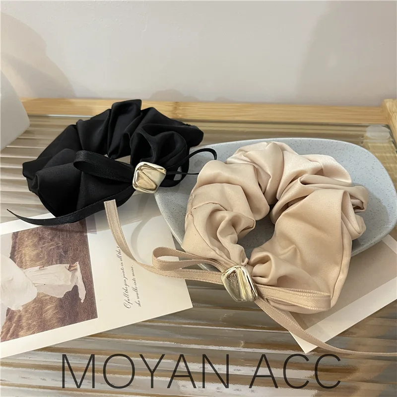 Купить Net red satin large intestine ring handmade bow hair French ribbon temperament rope Korean horsetail head |