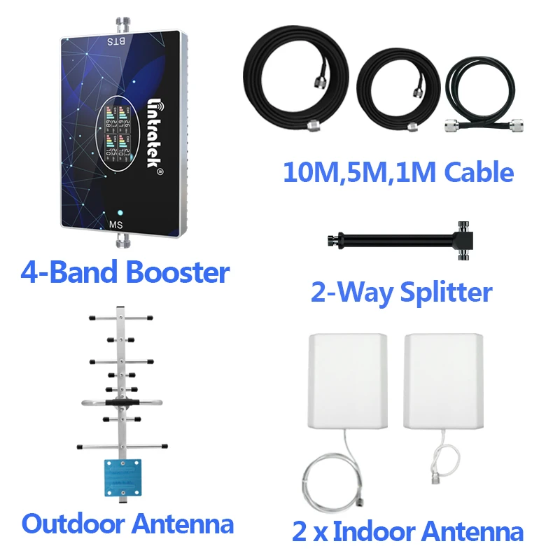 Lintratek 4-полосный усилитель сигнала 700 800 850 900 1800 2100 2600 GSM LTE 2G 3G 4G сотовый мобильный - купить