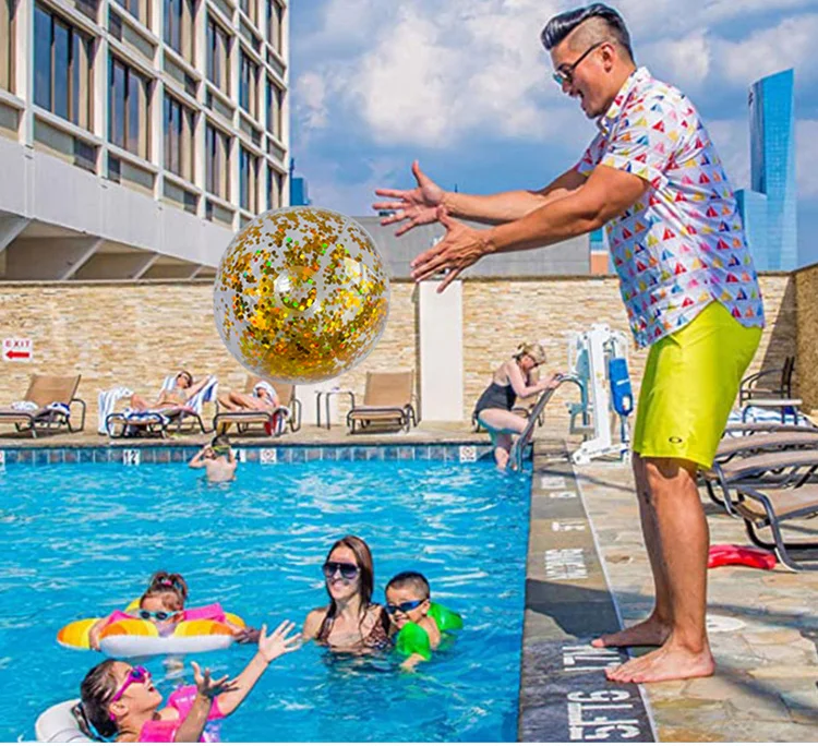 Beach Balls Inflatable Beach Swim Pool Balls for Kids Beach Toys for Toddlers Pool Game Toy Shine Water Ball Adult with Inflator
