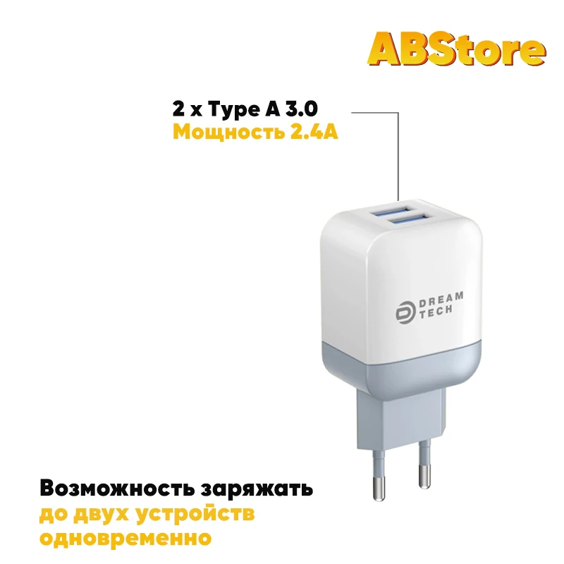 Сетевое зарядное устройство Dream С1 2x USB-A 5V / 2.4A