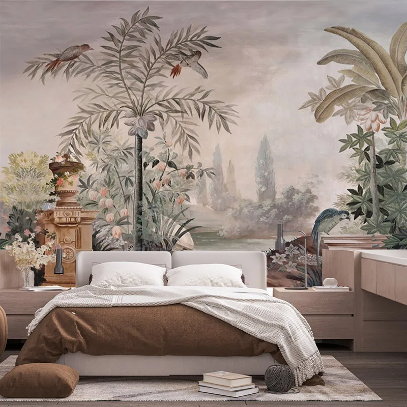 3D-обои ручной росписи тропические лес растения кокосовое дерево Настенные обои - купить