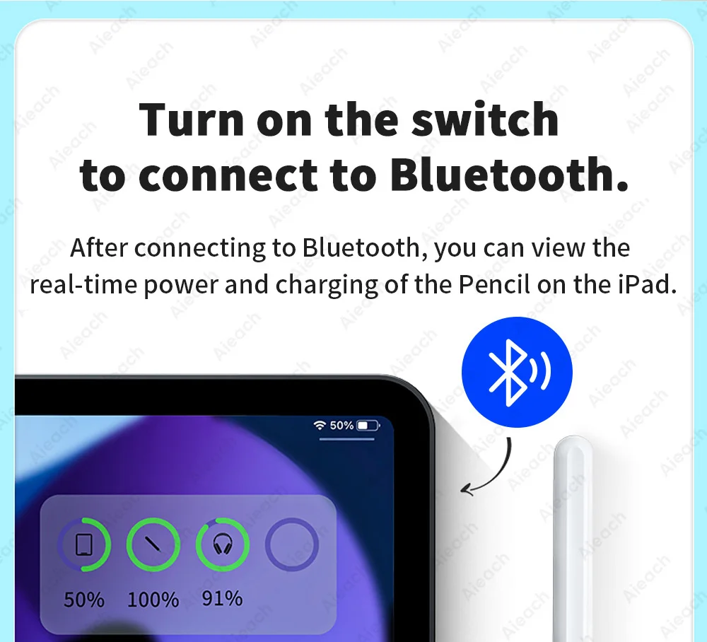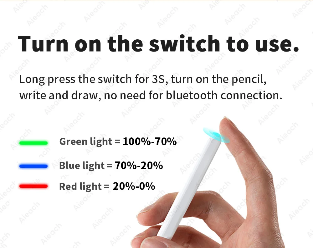 Для включения нажмите и удерживайте переключатель в течение 3 секунд изменение языка-5s, включите карандаш, писать и рисовать, нет необходимости для подключения bluetooth.