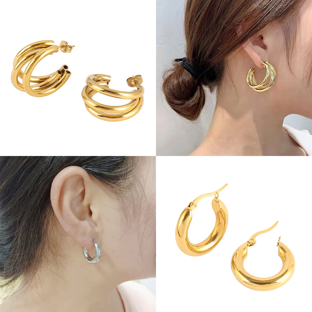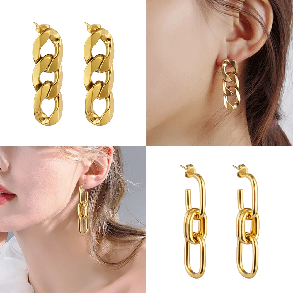 Пирсинг из панковской золотой цепочки нержавеющей стали для женщин необычные серьги с опаловыми каплями модные круглые украшения - купить