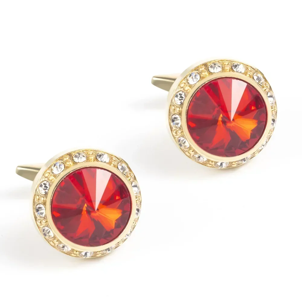 Мужские запонки свадебные подарки модные новые золотые красные стразы деловая - купить