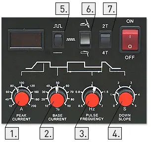 1. регулировка верхнего уровня сварочного тока для пульса (Peak Current)