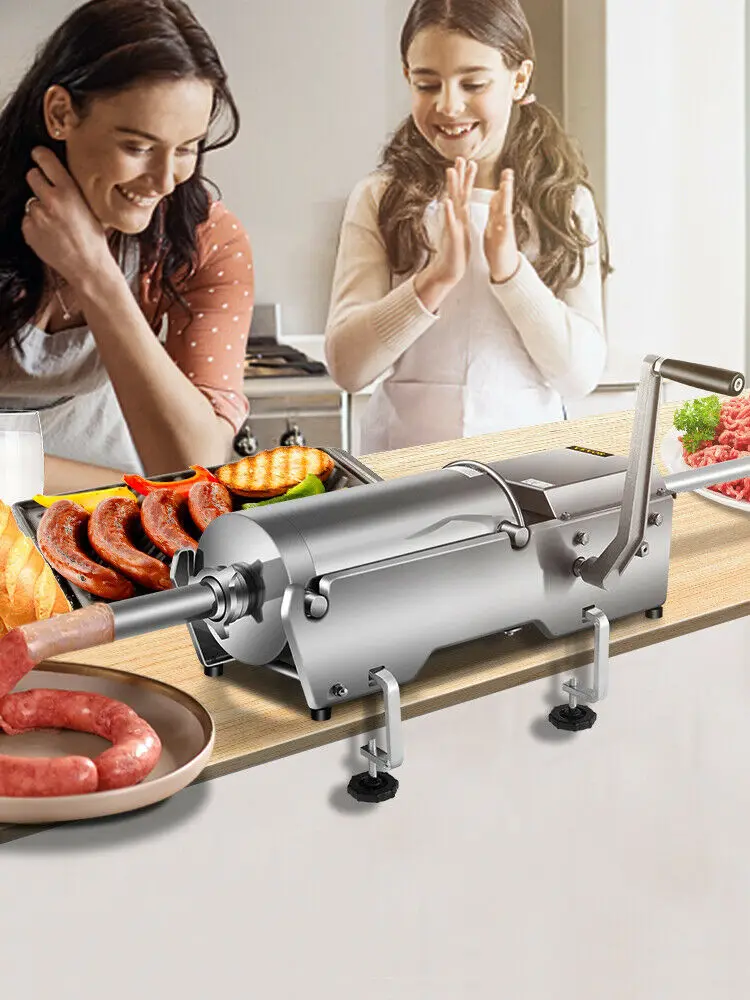 Горизонтальная конструкция и простота в использовании: использование горизонтальной конструкции, в основном, поскольку центр тяжести ниже, гарантируя, что машина более стабильна при изготовлении колбас. Эргономичная ручка экономит вам много усилий, а быстрая или медленная регулировка скорости позволяет завершить ее в небольшом количестве времени.