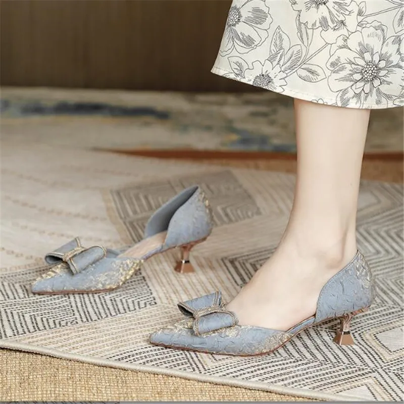 Отзывы о Туфли-лодочки женские атласные высокий каблук заостренный носок жемчуг бант