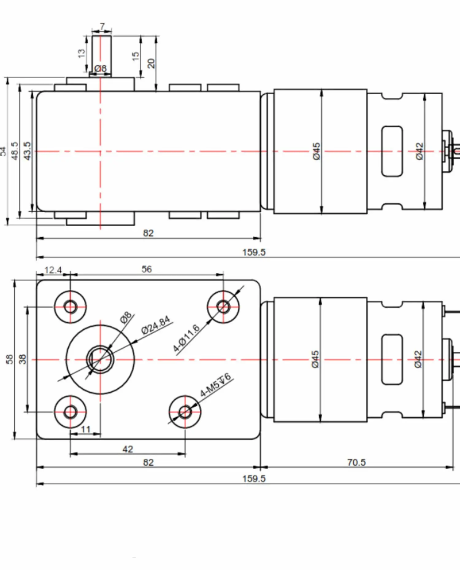Диаметр выходного вала: φ8