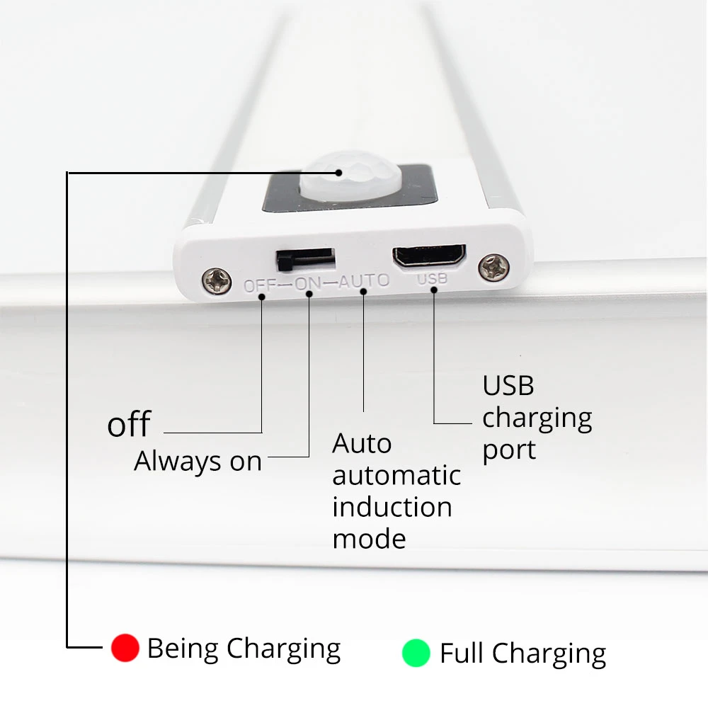 5. Светодиодный светильник с датчиком движения заряжается через usb-разъем. Интеллектуальный чип датчика использует пассивную инфракрасную технологию, которая обладает надежной производительностью и высокой чувствительностью и может точно распознавать ваши движения.