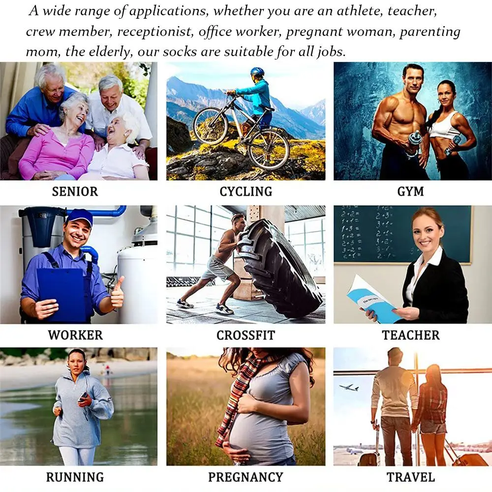 Тип: Компрессионные носки Пол: унисекс Материал: нейлон Функция: формирование Стиль: Модный, повседневный Сезоны: весна, лето, осень, зима Особенности: Гольфы; Мягкие и удобные Удобный носок и карман на пятке. Тонкий, легкий нейлоновый материал. Не переплет, дышащий, Комфортный топ. Компрессионные носки с защитой от усталости, успокаивают уставшие ноги и ноги! Используйте градуированное сжатие, максимум на лодыжке, которое постепенно уменьшает ногу, чтобы успокоить, массировать и зарядить ваши ноги и ноги. Удобный и сдержанный, достаточно тонкий, чтобы поместиться в любую обувь. Помогает уменьшить отеки, увеличить циркуляцию, контролировать запахи, успокаивает и массирует Ачи ноги и ноги, снимает признаки варикозного расширения вен. Легко надевается, отлично подходит для повседневного использования. Унисекс. Идеально подходит для того, чтобы быть на ногах или сидеть весь день и путешествовать! Посылка включает в себя: 1 пара компрессионных носков