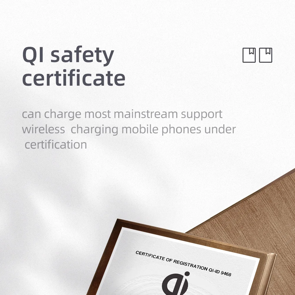 4. Поддержка samsung, iPhone 8, iPhone X и другой мобильный телефон s с приемником QI, не дожидаясь беспроводной зарядки; Расстояние зарядки 5 см, мобильный телефон можно заряжать в любое время, чувствительная и быстрая зарядка, без проблем с загрузкой и разгрузкой мобильный телефон