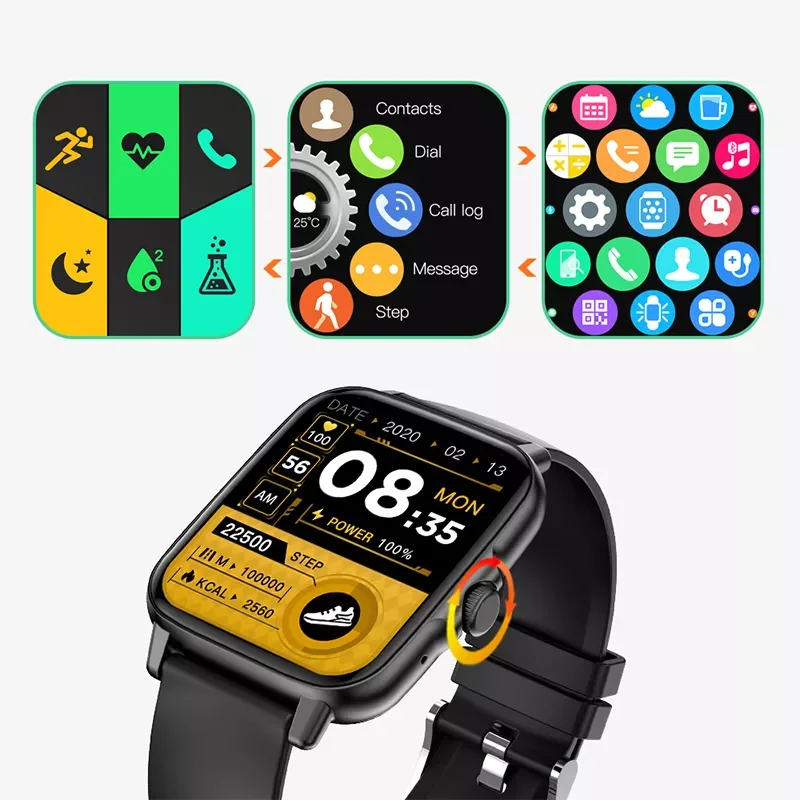 Многофункциональные NFC, пользовательские обои. Bluetooth Вызов, управление музыкой, соцприложение напоминание сообщений, напоминание о звонках, SMS напоминание, пульс/кровяное давление/мониторинг кислорода в крови, мульти-спорт, Будильник Напоминание, напоминание о сидячем положении, найти мобильный телефон, воспроизведение музыки, секундомер. Расчетное устройство, повседневные игры