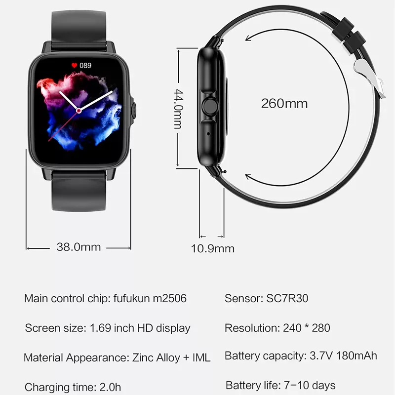 Экран: 1,69 дюйма TFT 240*280 Сенсорная панель: Полный сенсорный экран Аккумулятор: 180 мАч Приложение: одежда M2 Метод зарядки: Магнитная Зарядка Водонепроницаемость: IP67