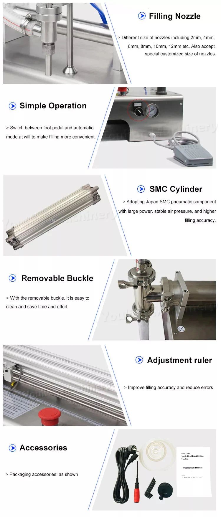 ПрименениеYouLian полуавтоматическая машина для наполнения поршневых жидкостей является высокоточной, универсальной и чрезвычайно удобной. Этот объемный пневматический наполнитель вытягивает жидкости и другие продукты с низкой вязкостью непосредственно из резервуара или барабана, что устраняет необходимость в бункере для продукта. Этот поршневой Разливочный станок также может использоваться в качестве дозирующего насоса для распределения регулируемого объема при необходимости.