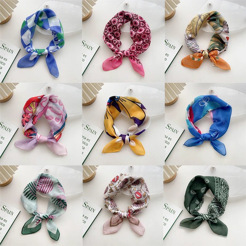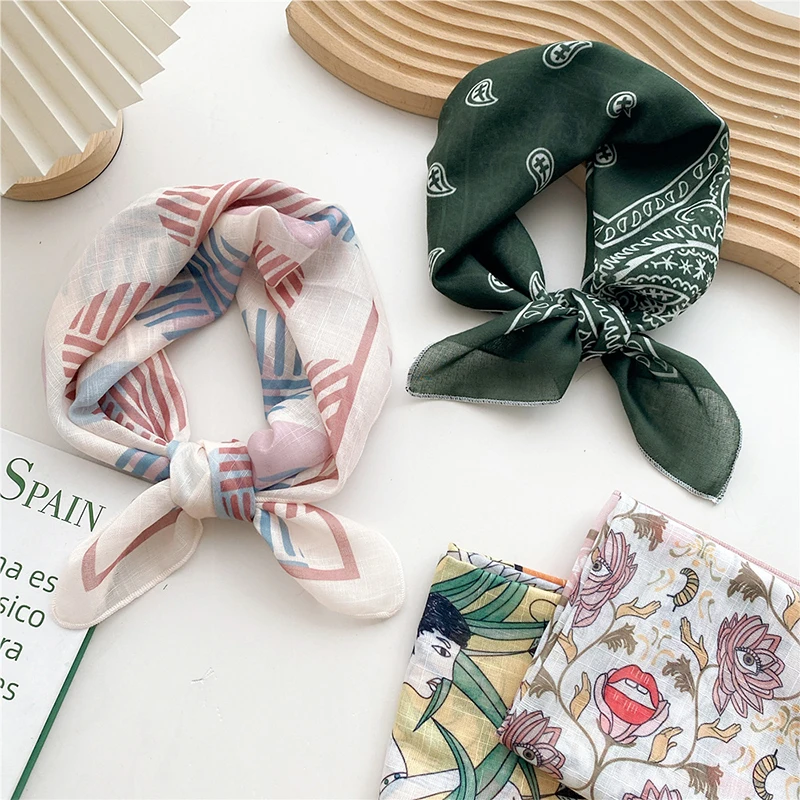 Отзывы о Новые женские шарфы из хлопка и льна 58*58 см маленькие квадратные для женщин тонкие головные платки с принтом цветов хараджуку