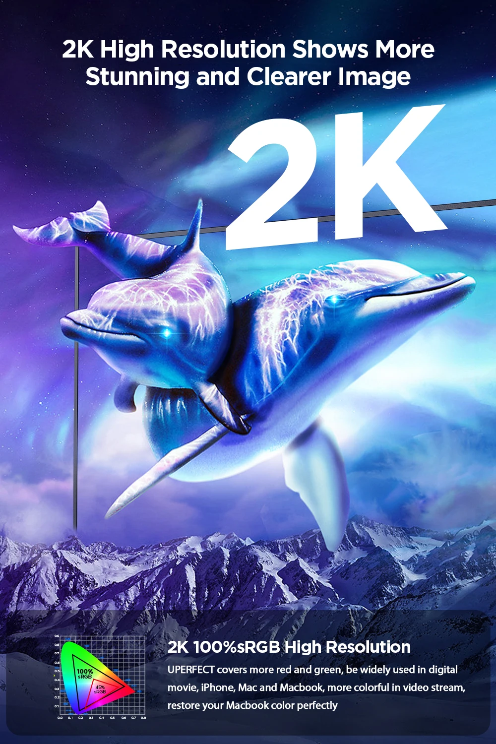 【VESA MOUNTABLE-простой в установке для WFH】UPERFECT 2K экран для путешествий имеет VESA сзади, вы можете установить монитор на руку и установить его в Ландшафтный или портретный режим, как вы хотите. Размер VESA M4 * 4 мм. Не используйте слишком короткие или слишком длинные винты для крепления, или это покажет неправильное изображение.