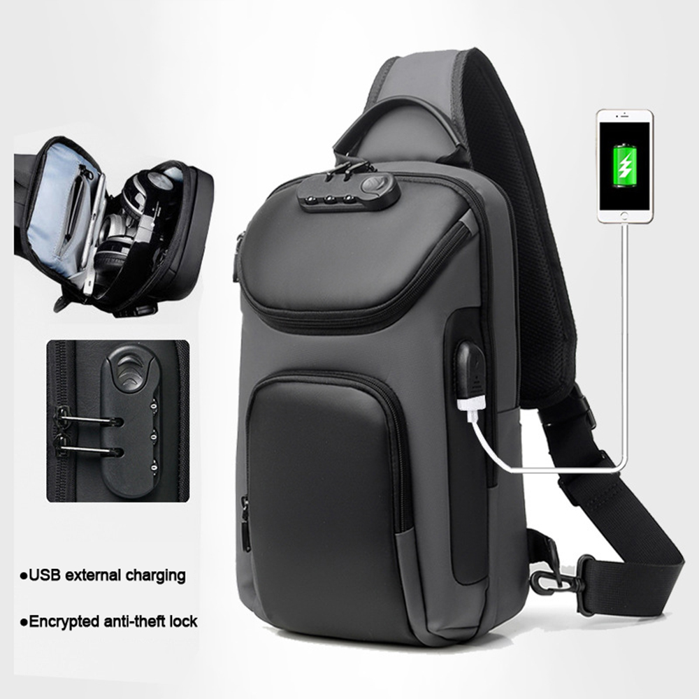 Отзывы о Сумка-чехол на грудь для мужчин с USB-портом водонепроницаемая компактная изготовленная из материала Oxford идеальна коротких путешествий защищает от краж многофункциональная
