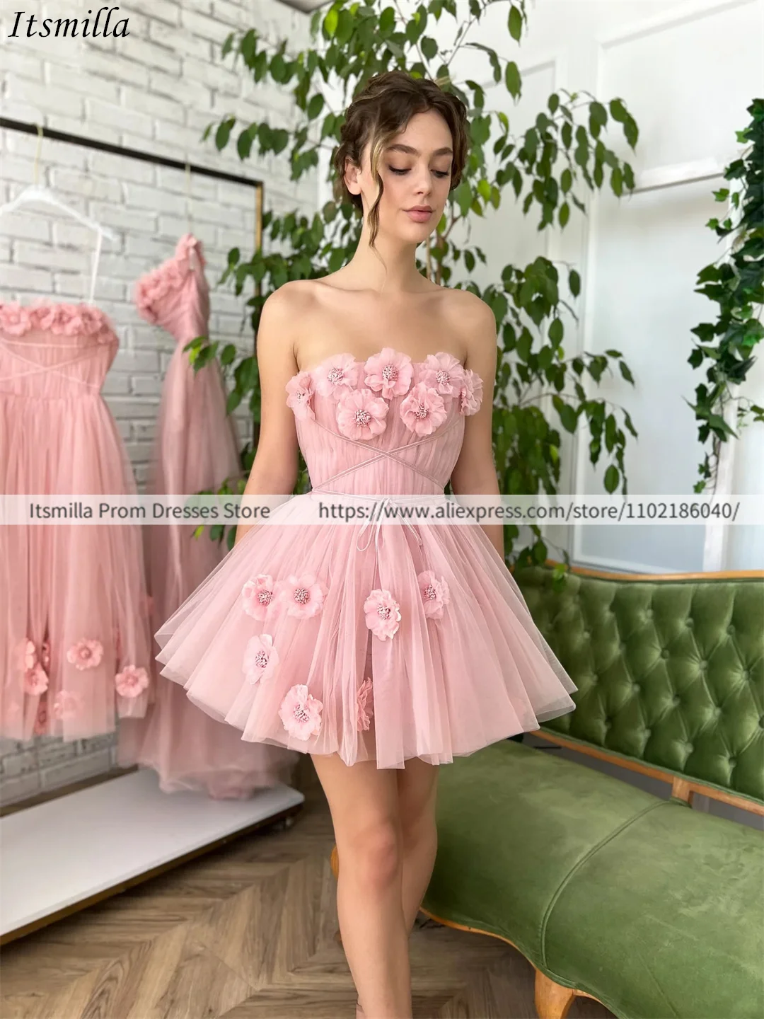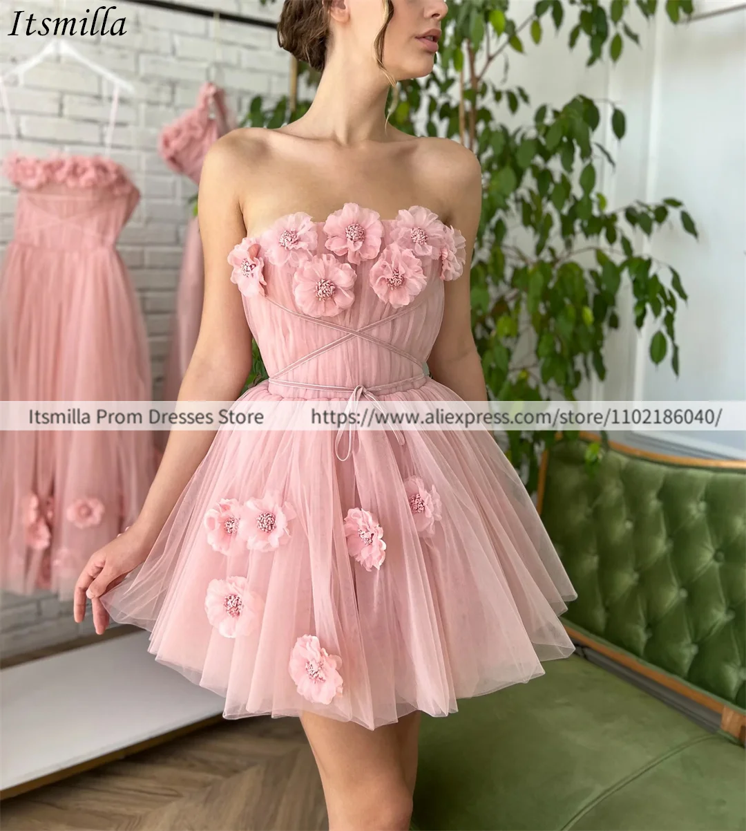 Купить Itsmilla розовые тюлевые трапециевидные платья для выпускного вечера без бретелек