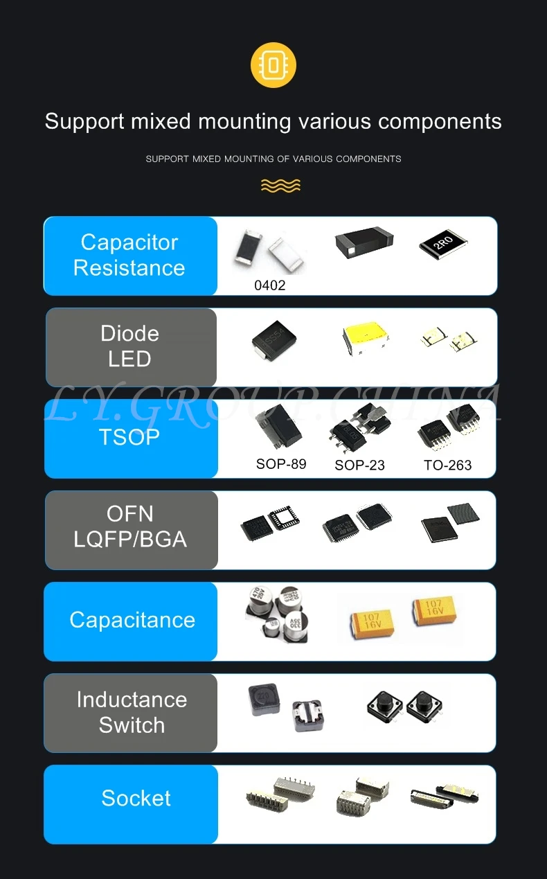 Q2S: QFP Тип: 0402,0603,0805,1206,CD12, BGA,SOP,SSOP,QFN, высокий конденсатор
