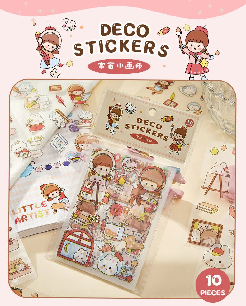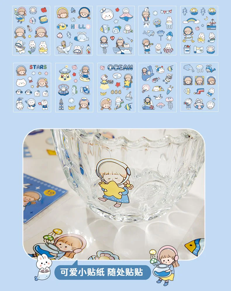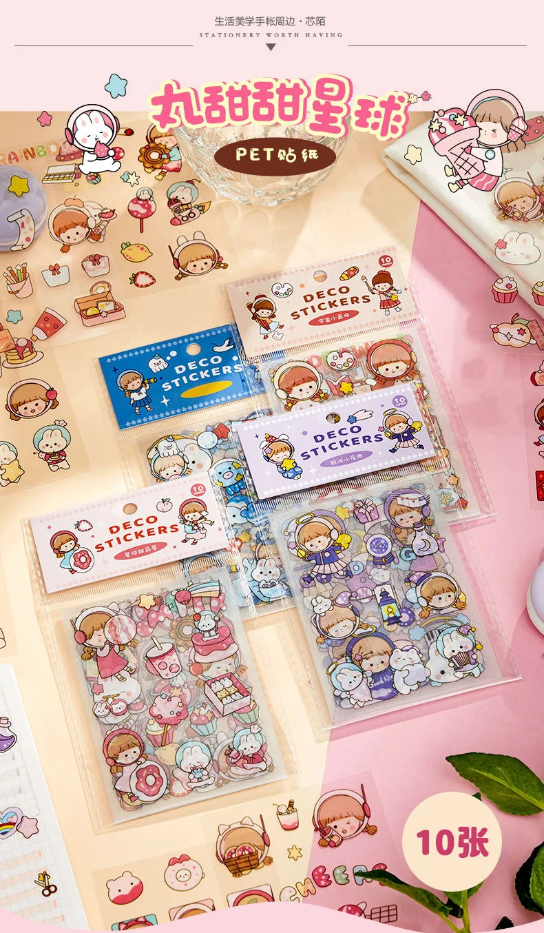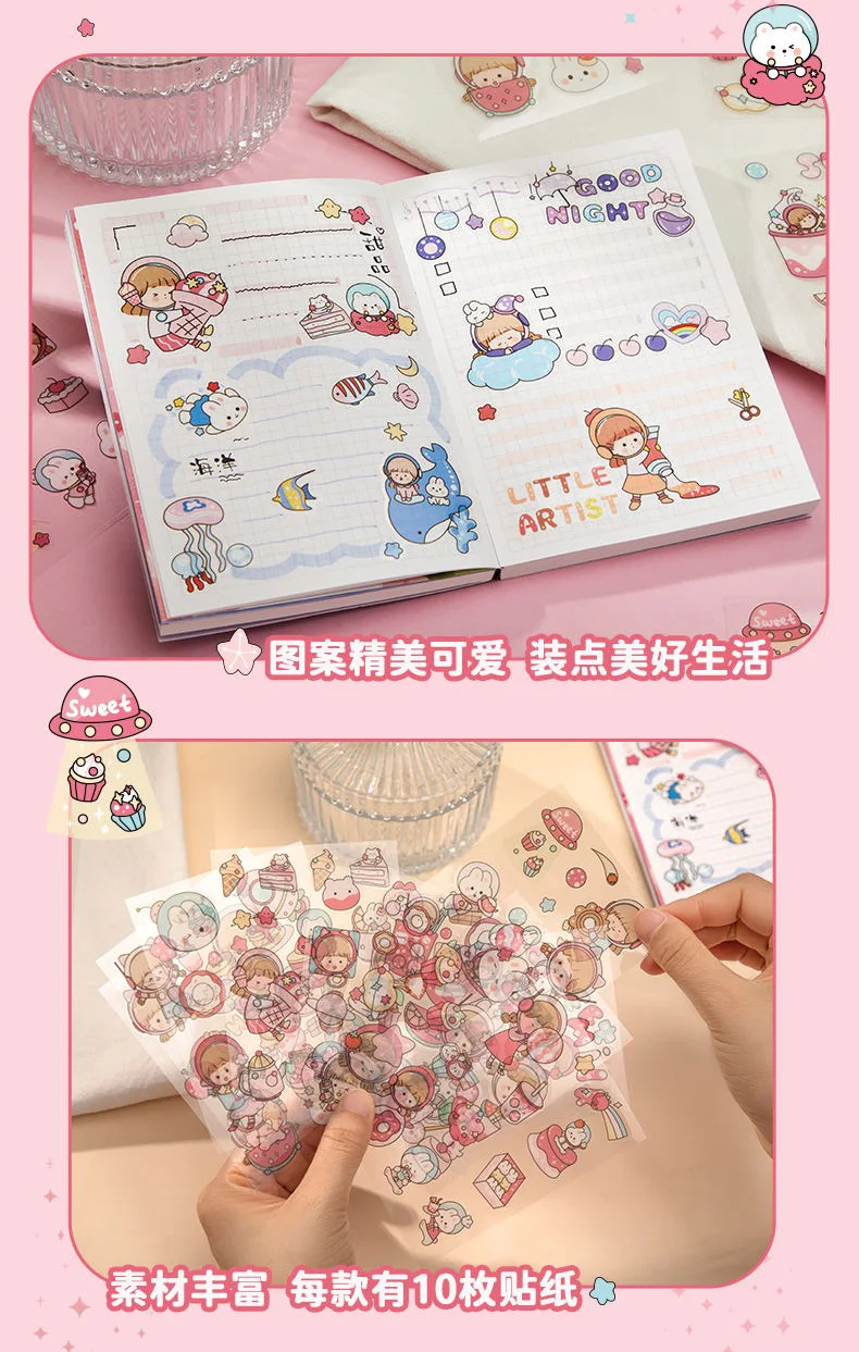 Купить 10Sheets Cute Girls And Rabbit Stickers Kawaii PET Labels Decor Phone Scrapbooking Notebooks Art Sketchbook For School |