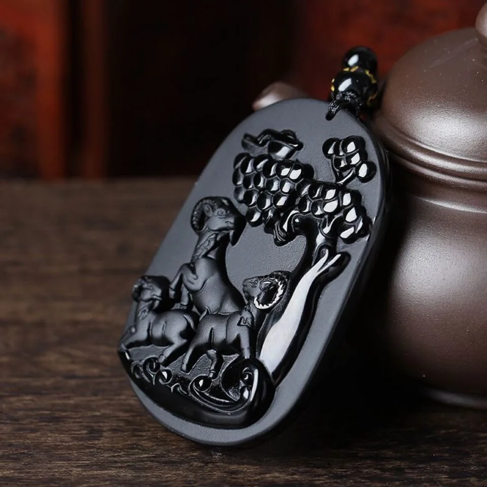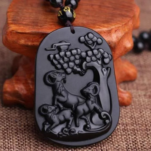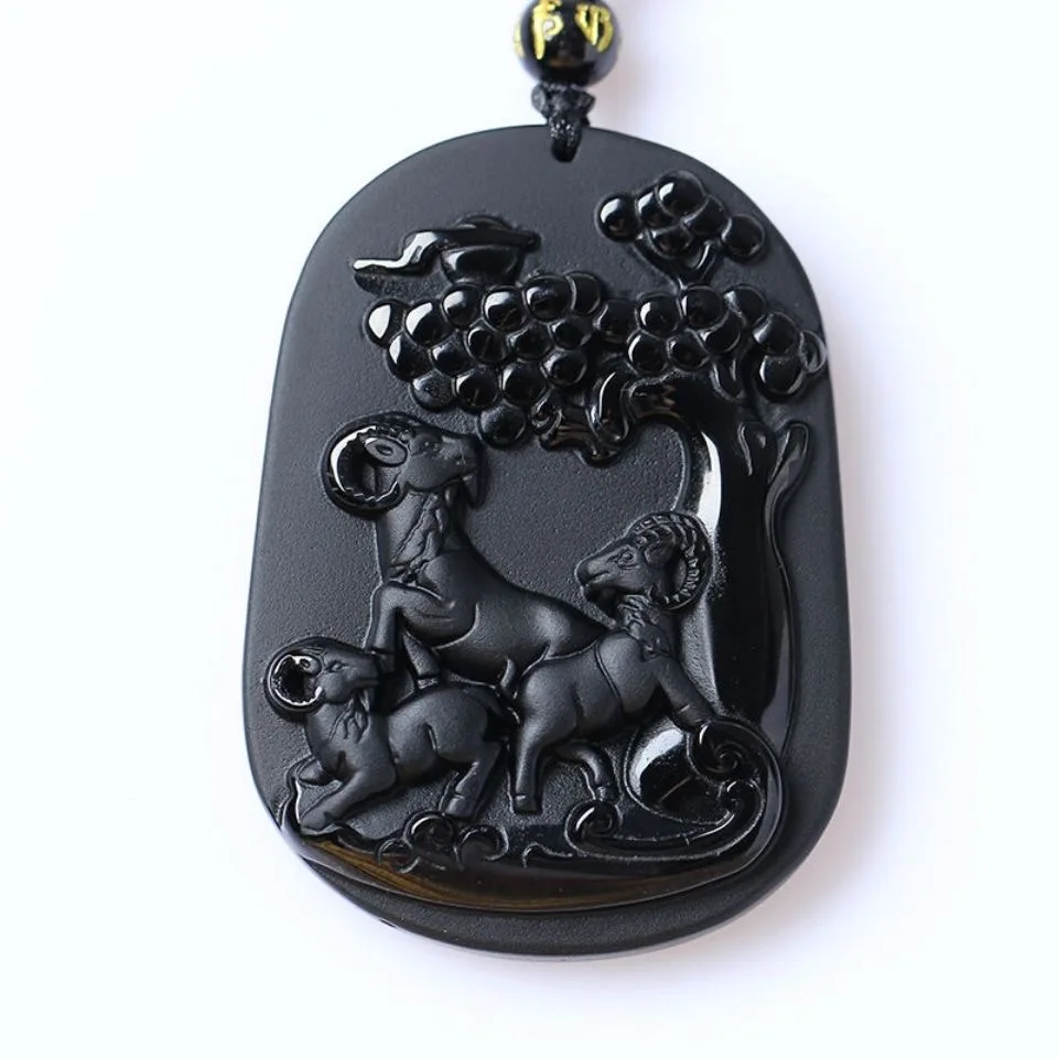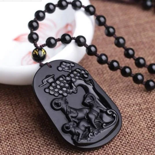 Купить Ожерелье с подвеской из натуральной овчины обсидиана очаровательные украшения