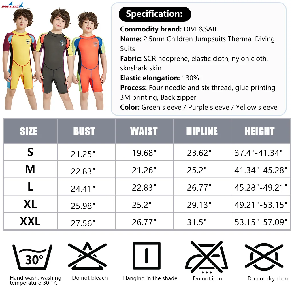 Название продукта: 2,5 мм детский цельный теплый костюм для дайвинга