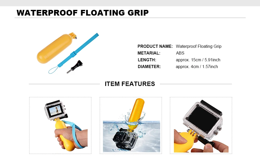 【Floating Grip】Special yellow outlook, вместе с регулируемым ремешком на запястье, поэтому камера имеет двойную защиту; Держит камеру на плаву в воде во время плавания или подводного плавания; Идеально подходит для фотографии во время водных видов спорта.
