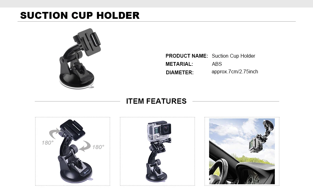 【Крепление на присоске автомобиля 】промышленная прочная присоска прочно крепится к любой гладкой поверхности с супер присоской, обеспечивая широкий диапазон движения и стабильности; Она может подключить камеру к автомобилям, лодкам, мотоциклам и другим.