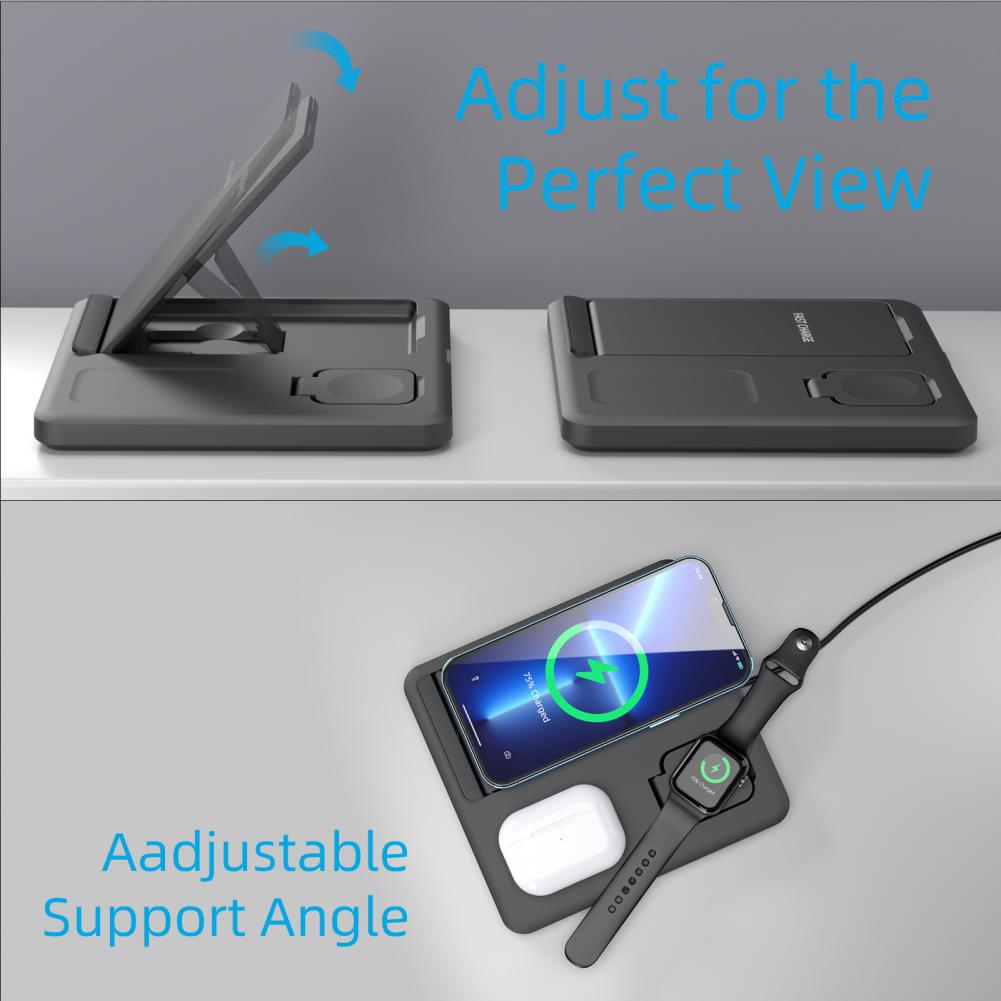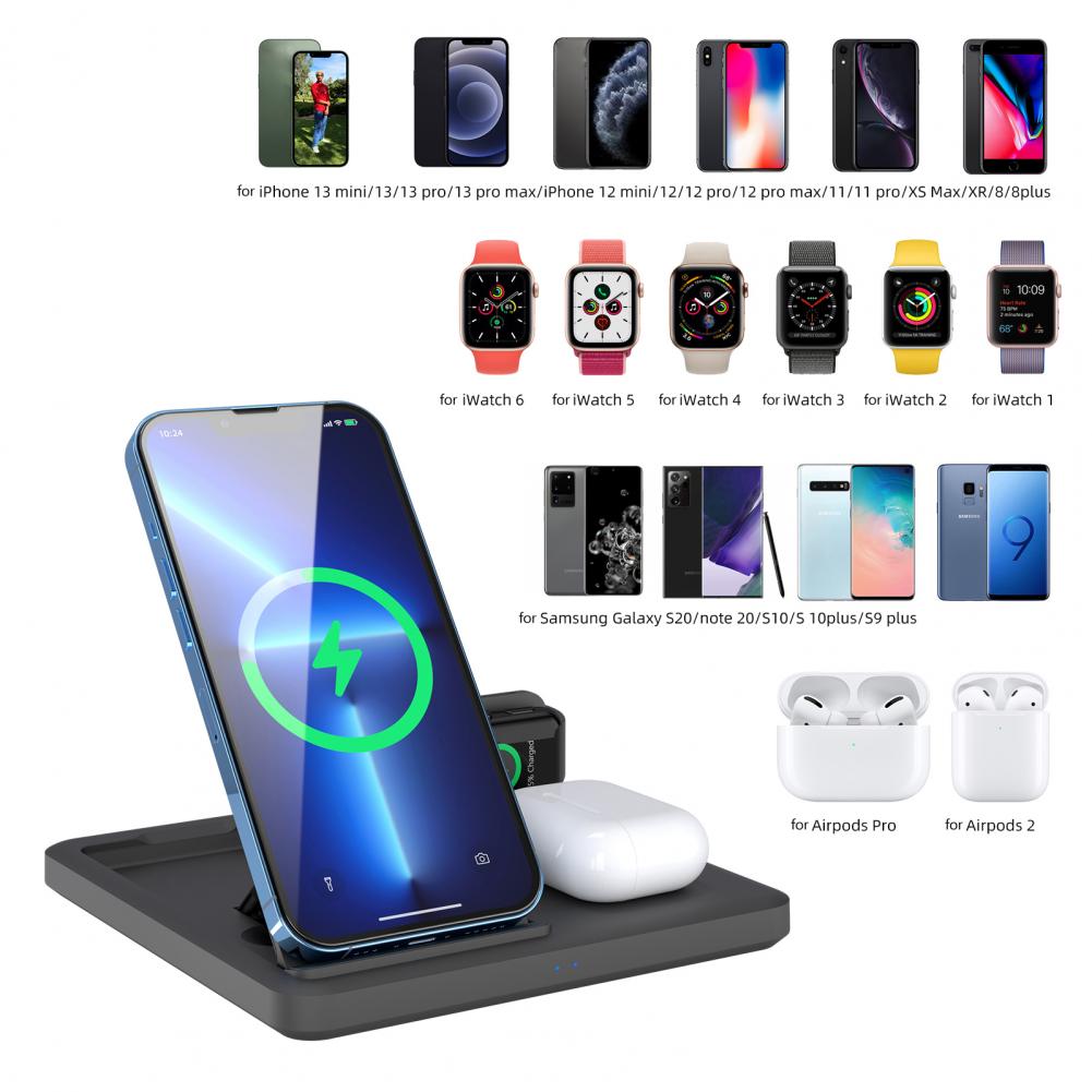 Благодаря функции «3 в 1» эта беспроводная зарядная подставка может заряжать мобильные телефоны, часы, а также наушники, и ее можно сложить для удобства переноски в путешествиях.