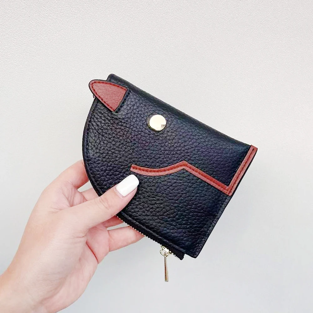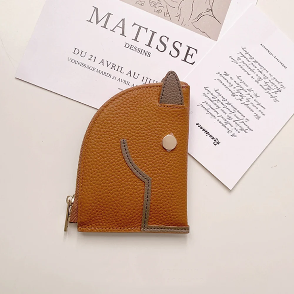 Роскошный кошелек из воловьей кожи на молнии, Модный классический женский кошелек из натуральной кожи с головой лошади, дизайнерский причудливый женский кошелек с отделением для карт