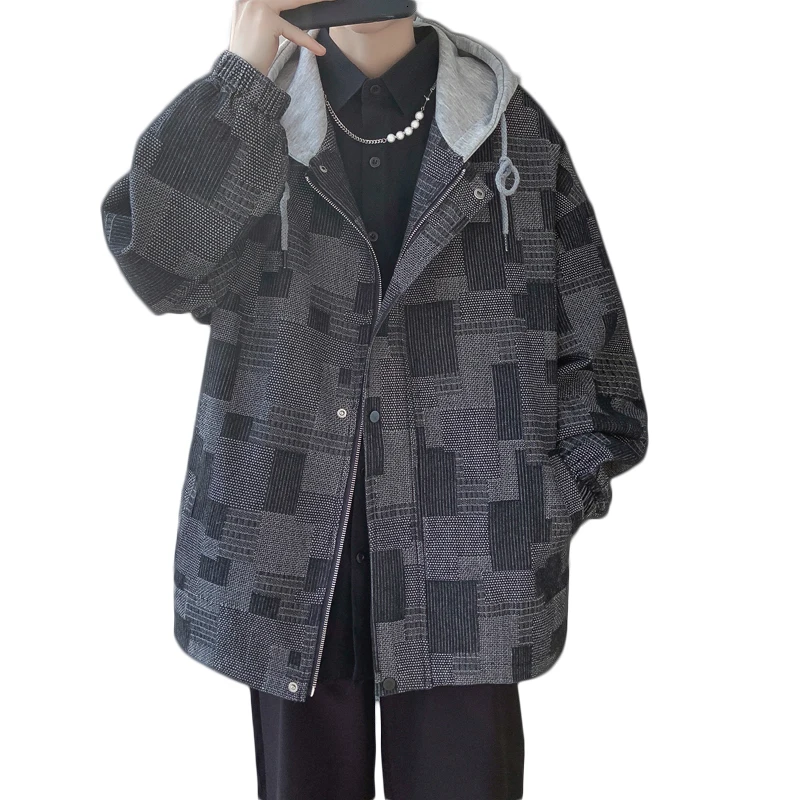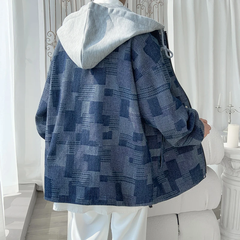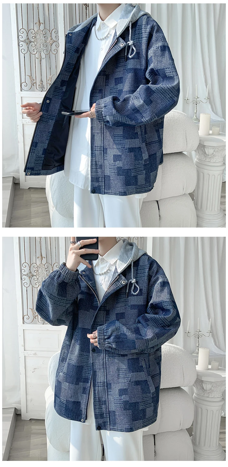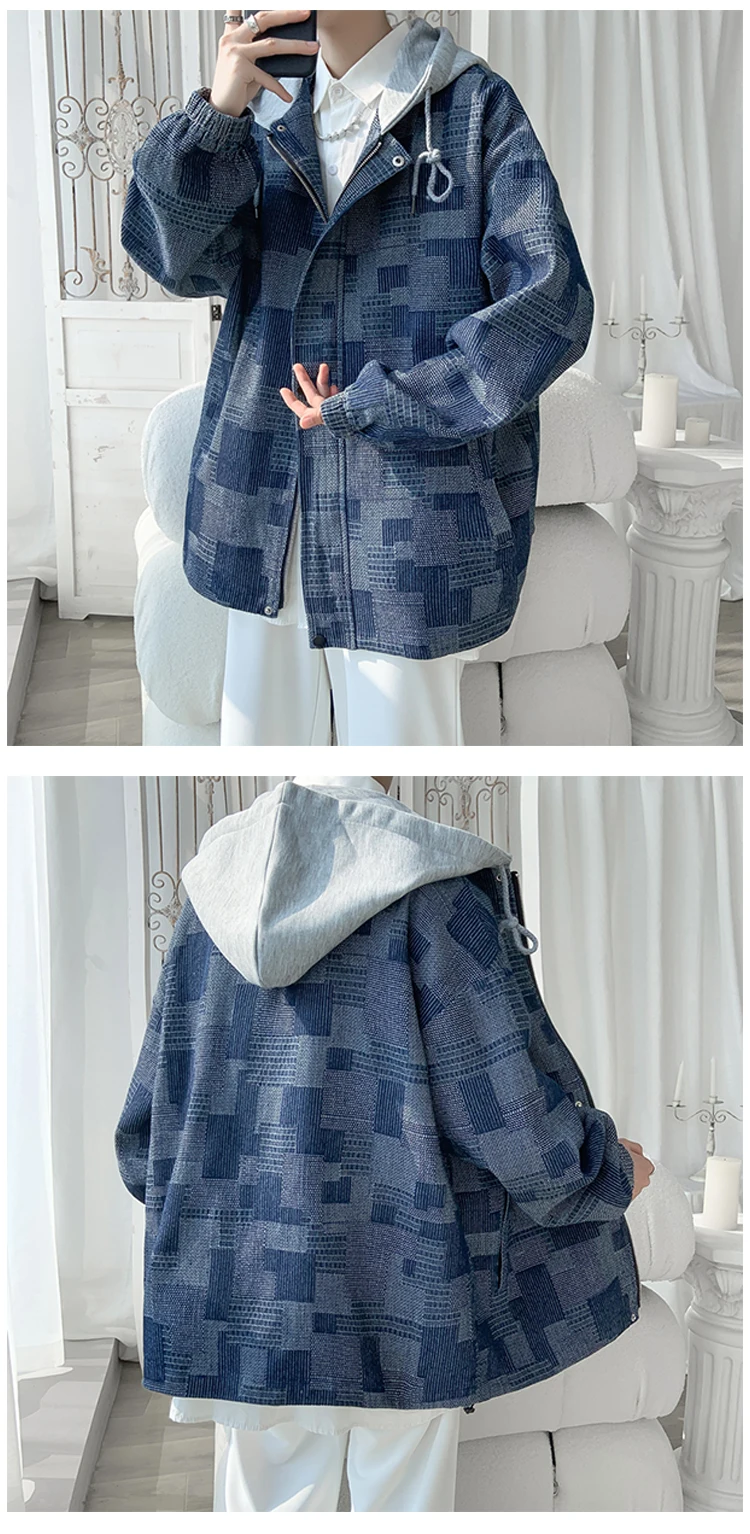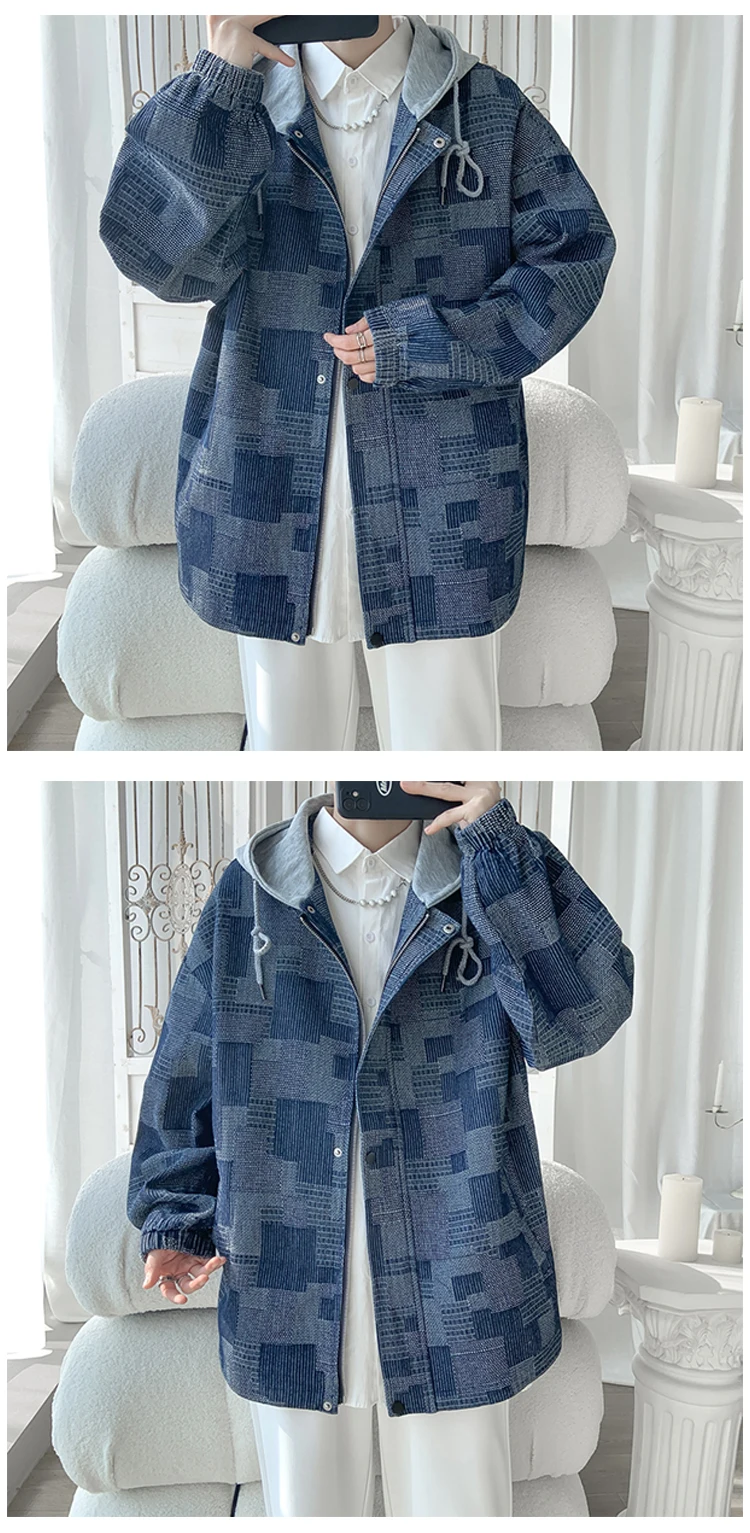Куртка из джинсовой ткани для мужчин в уличном стиле с клетчатым узором - купить