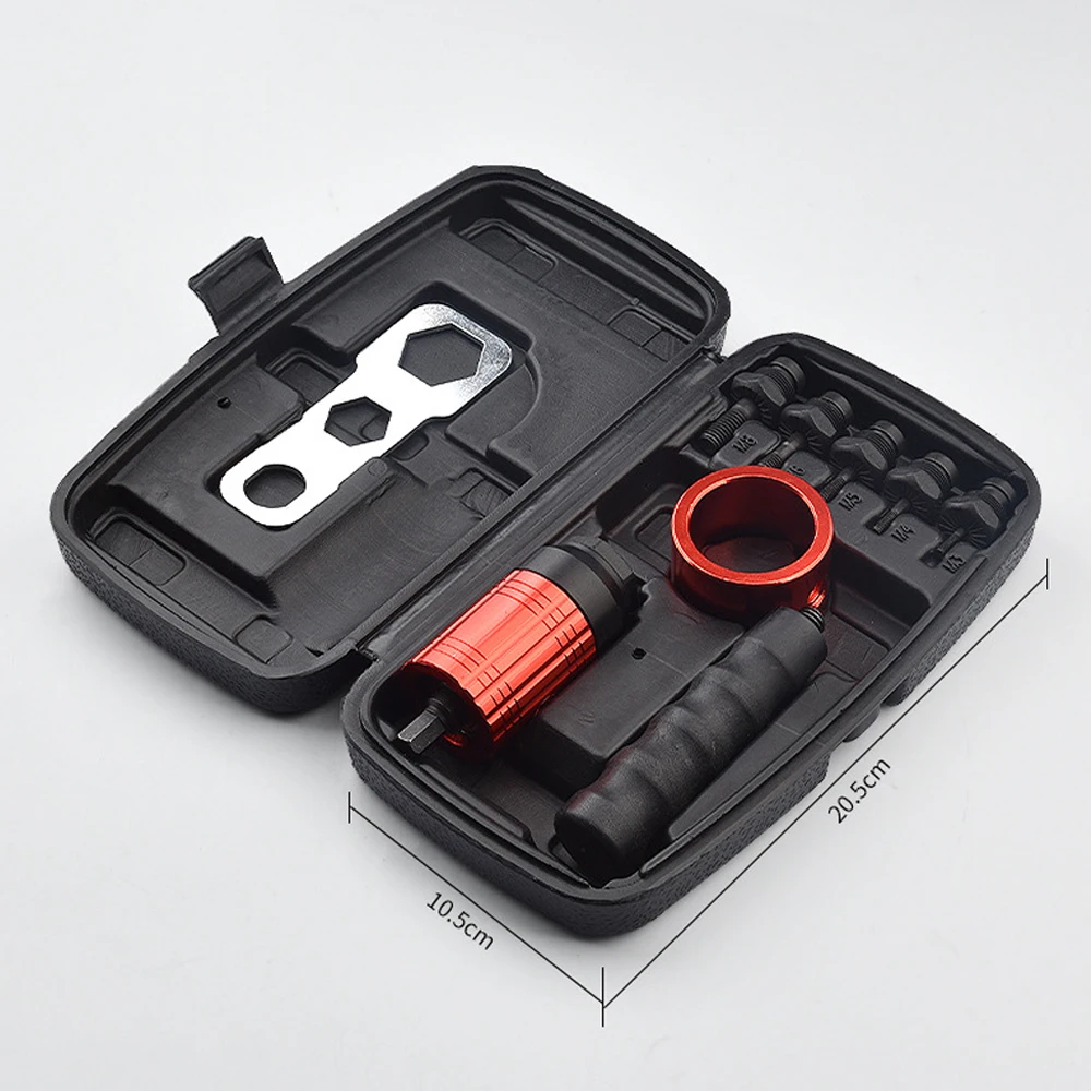 С помощью этого набора инструментов вы можете преобразовать ваш 3/8 Трещоточный ключ или электрическую дрель в ручную или электрическую заклепочную машину. Таким образом, вам больше не нужно приобретать отдельный Клепальный Инструмент. Если вы заинтересованы в этом продукте, приходите и попробуйте, это не подведет вас.