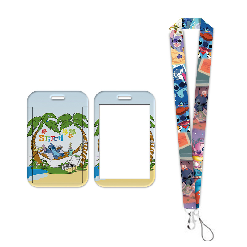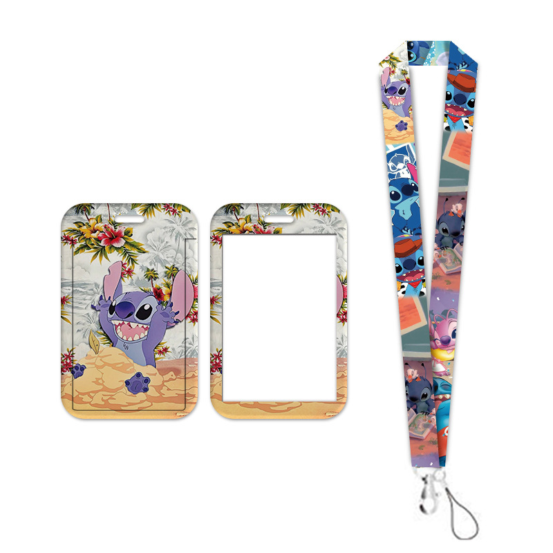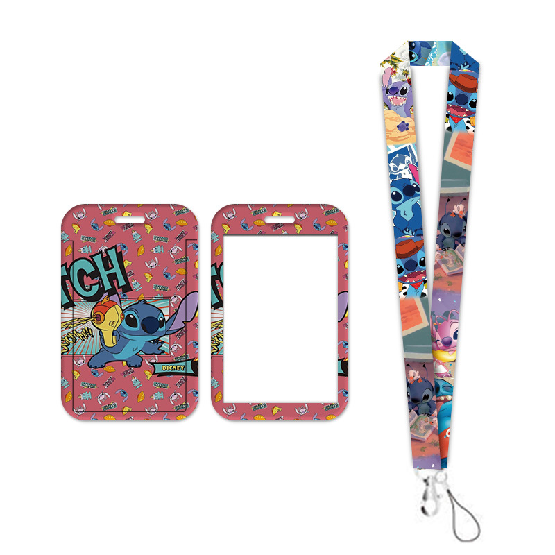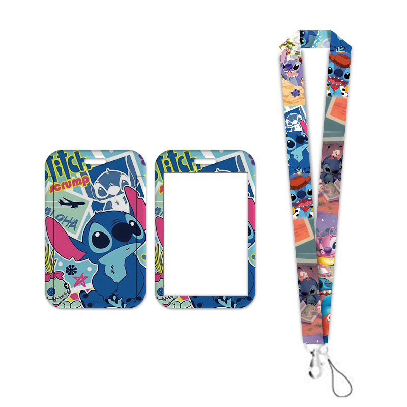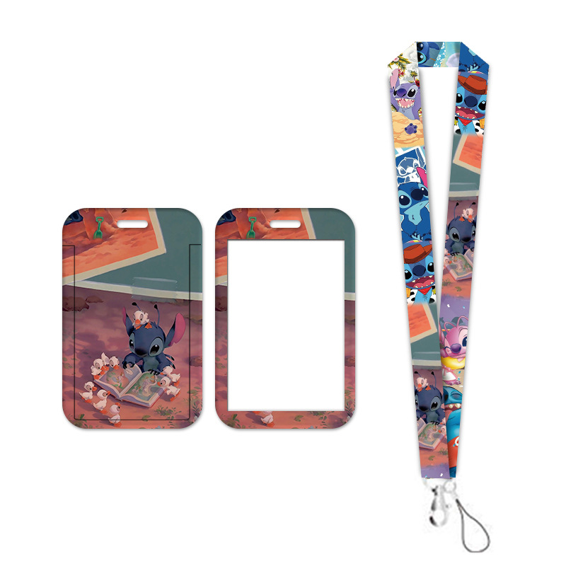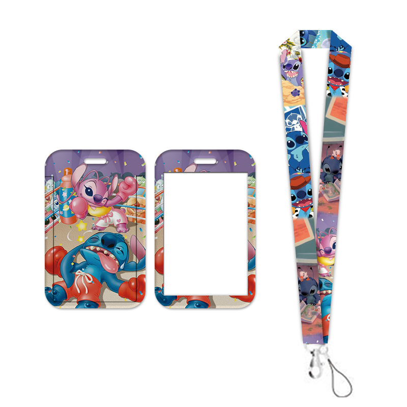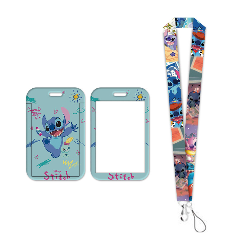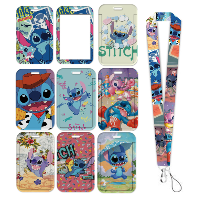 Новый Disney идентификационный держатель для карт Kawaii Lilo & Stitch висячая шея длинный веревочный держатель для карт милый стежок защита для банковских картБренд: Disney