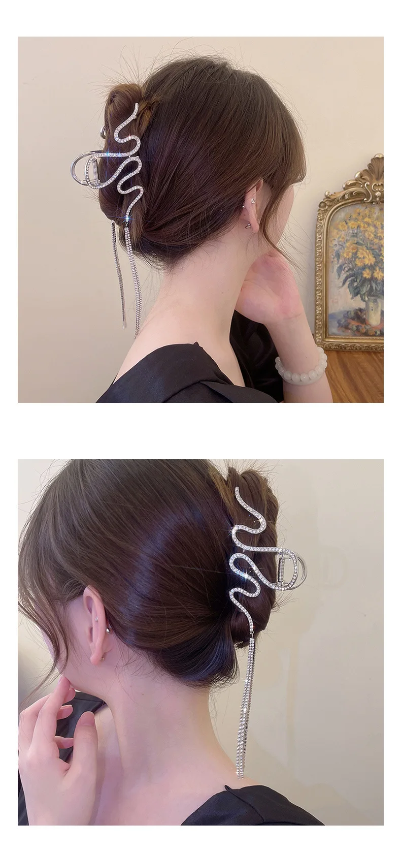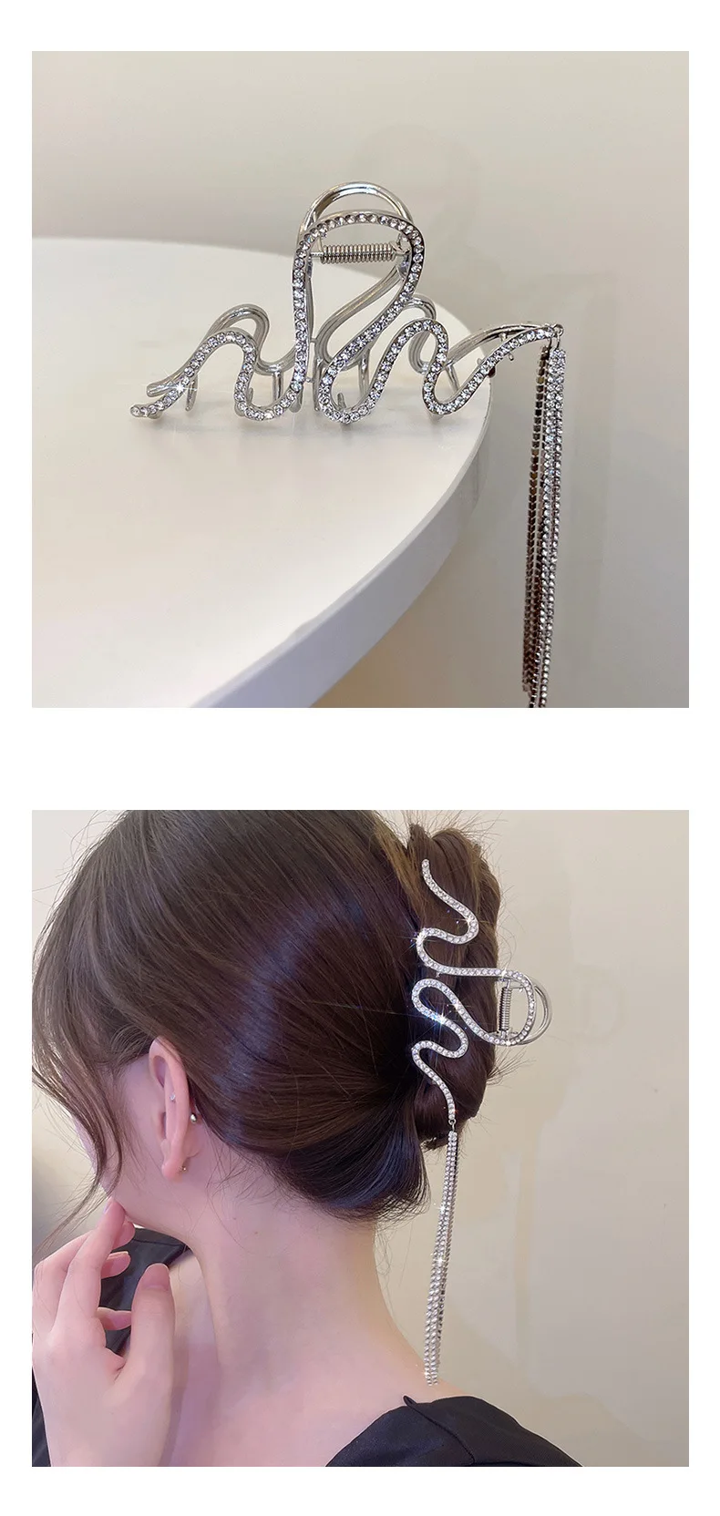 Корейские кристальные длинные кисточки для волос женщин роскошные золотые и серебряные металлические большие зажимы "Краб" аксессуары Фемме Новинка - купить