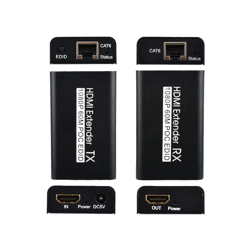 60 м POC EDID HDMI удлинитель 1080p 60 м HDMI передатчик приемник по Cat 5e/6 RJ45 Ethernet конвертер США/ЕС Разъем для ПК ТВ