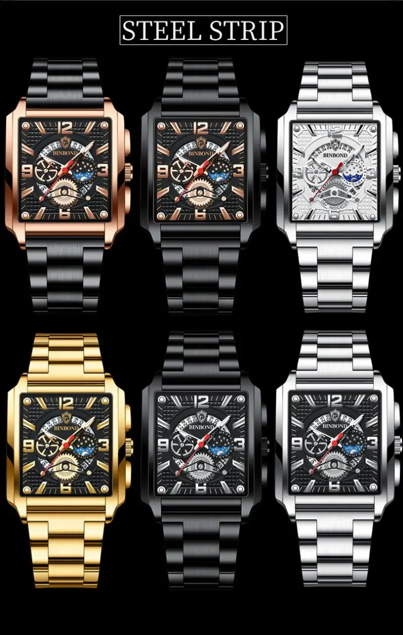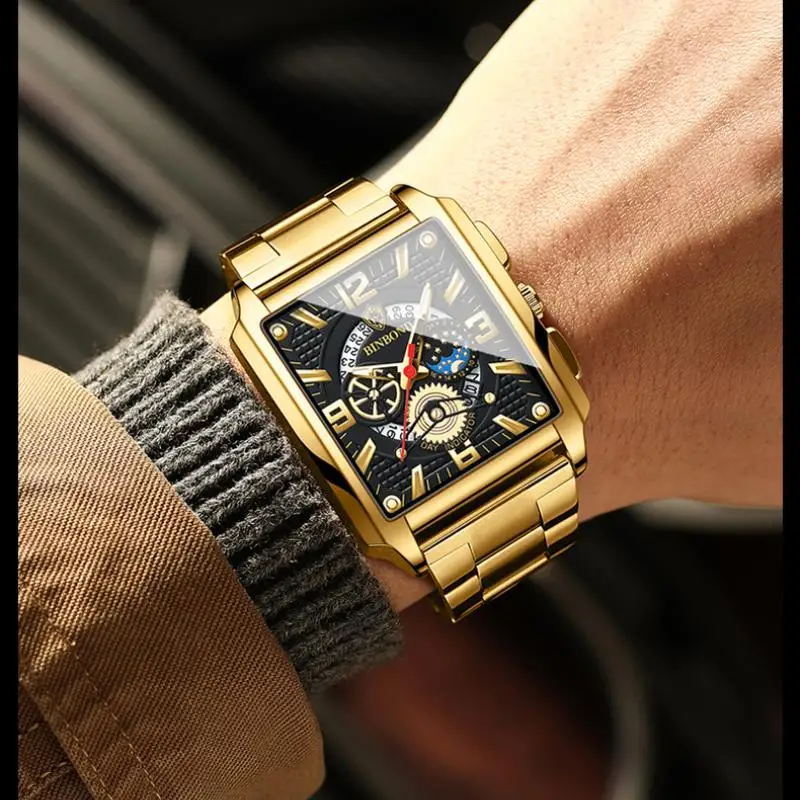 Отзывы о Часы наручные мужские с квадратным циферблатом брендовые роскошные золотистые