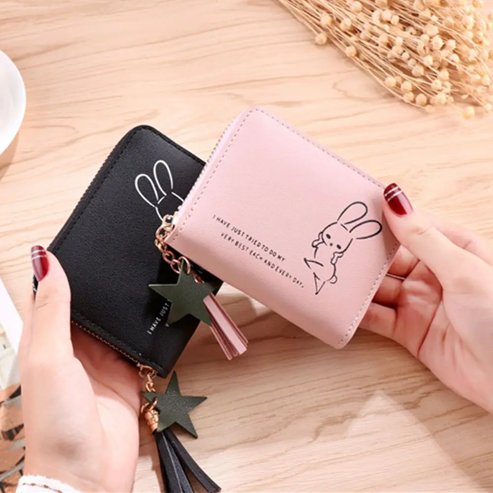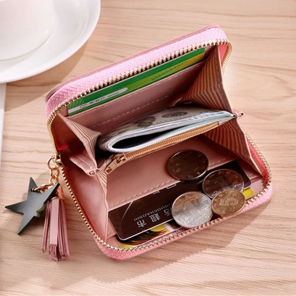 Новый кошелек в Корейском стиле, простой квадратный женский кошелек на короткой молнии, маленький кошелек с кисточками, мини кошелек для монет, женский клатч, держатель для карт