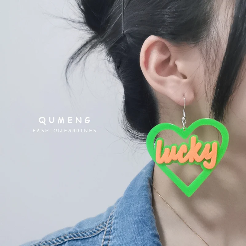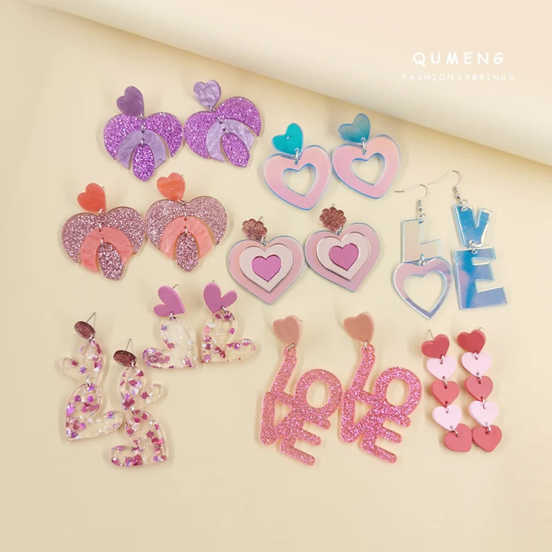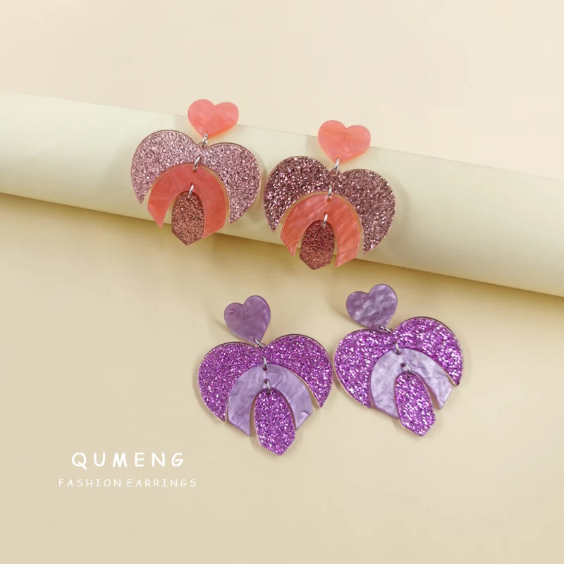 Купить Серьги женские акриловые сердечки с блестками розового и красного цветов, геометрической формы, сверкающие, романтические, милые, подарок на святого Валентина и фестиваль.
