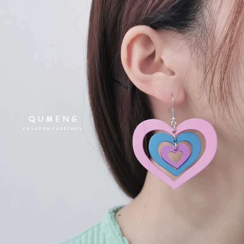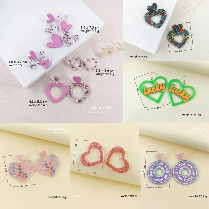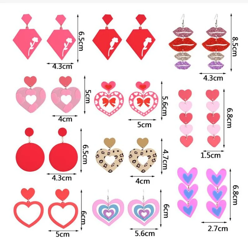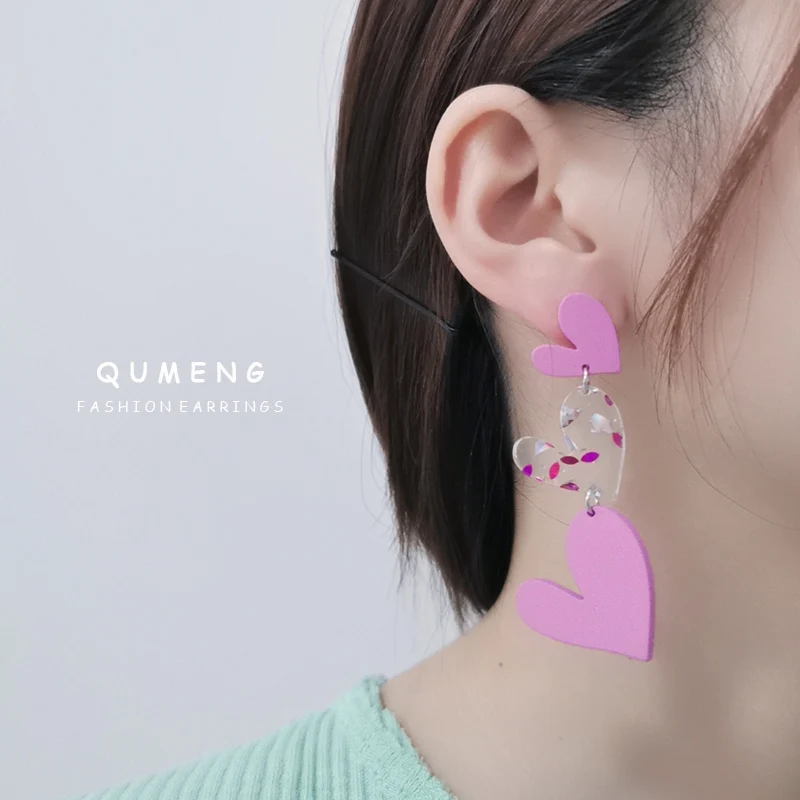 Отзывы о Серьги женские акриловые сердечки с блестками розового и красного цветов геометрической формы сверкающие романтические милые подарок на святого Валентина фестиваль