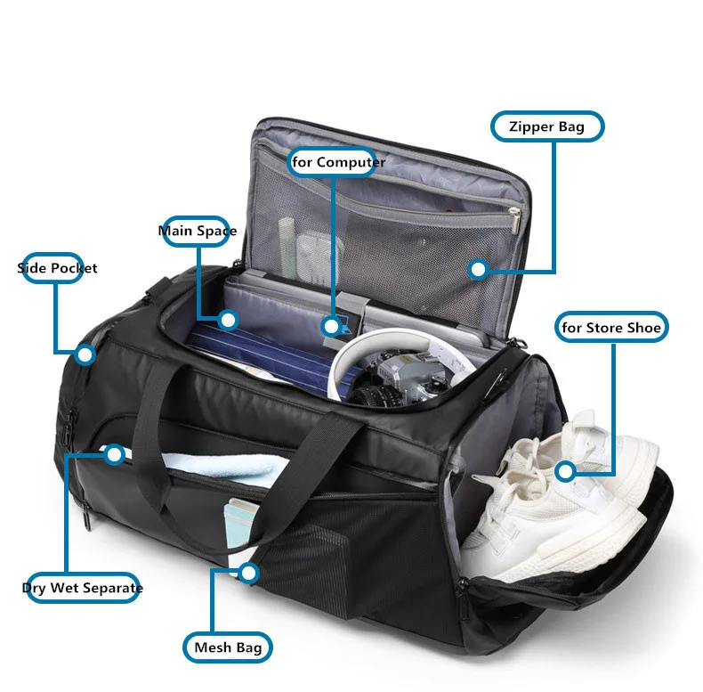 Мужская спортивная сумка с большой емкостью, спортивная сумка для занятий фитнесом, рюкзак для занятий сухой и влажной йогой, деловая дорожная сумка с сумкой для обуви 62x26x26cm