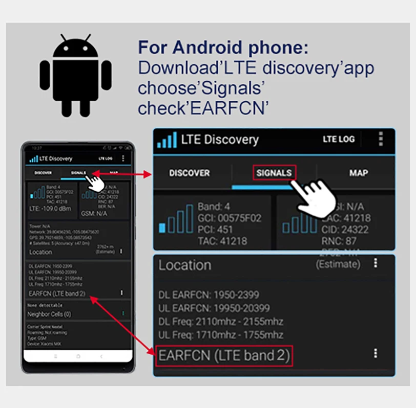 Для телефона Android:> Download'LTE приложение для обнаружения> выбор 'знаков> check'EARFCN'
