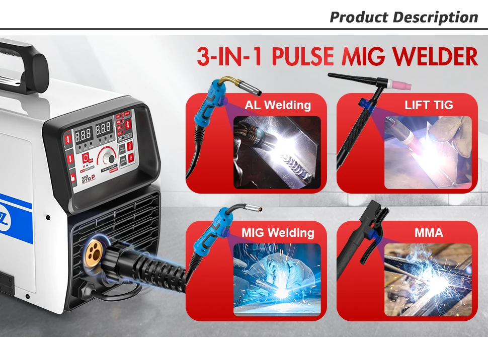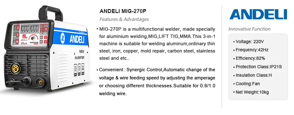 ANDELI MIG-270P полуавтоматический сварочный аппарат 3 в 1 MIG/LIFT TIG/MMA MAG MIG алюминиевый - купить