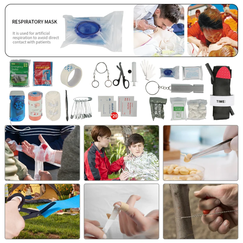 Легко носить с собой, подходит для первой помощи на открытом воздухе, выживания и чрезвычайных ситуаций.
