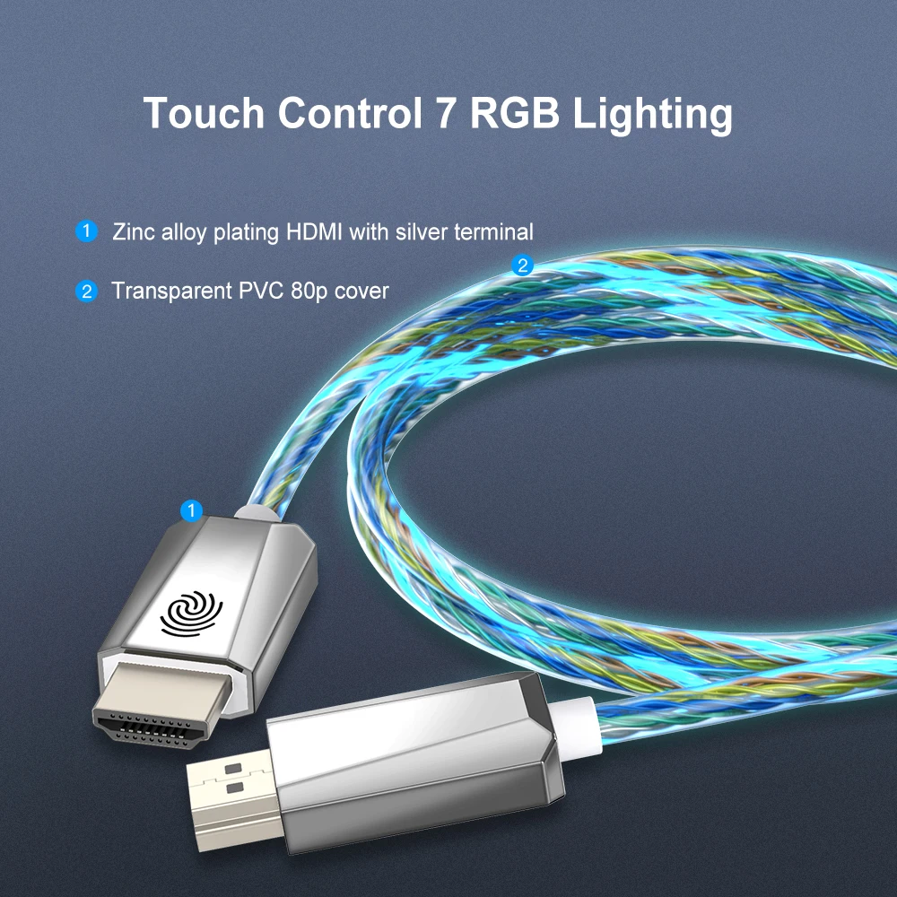 Купить Кабель HDMI Sup port s 4K HDMI2.0 порт 60 Гц дисплей с сенсорным управлением RGB Освещение
