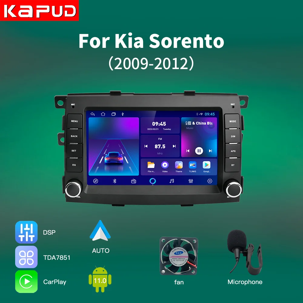 Автомагнитола Kapud 7 дюймов Android 11 с GPS CarPlay для Kia Sorento 2 XM 2009 2010 2011 2012 8 ядер DSP Wi-Fi 4G SWC BT - купить