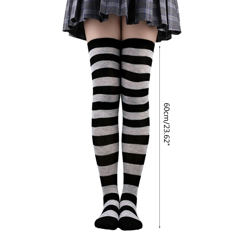 Высокие носки до бедра для женщин эластичные длинные чулки выше колена в полоску - купить