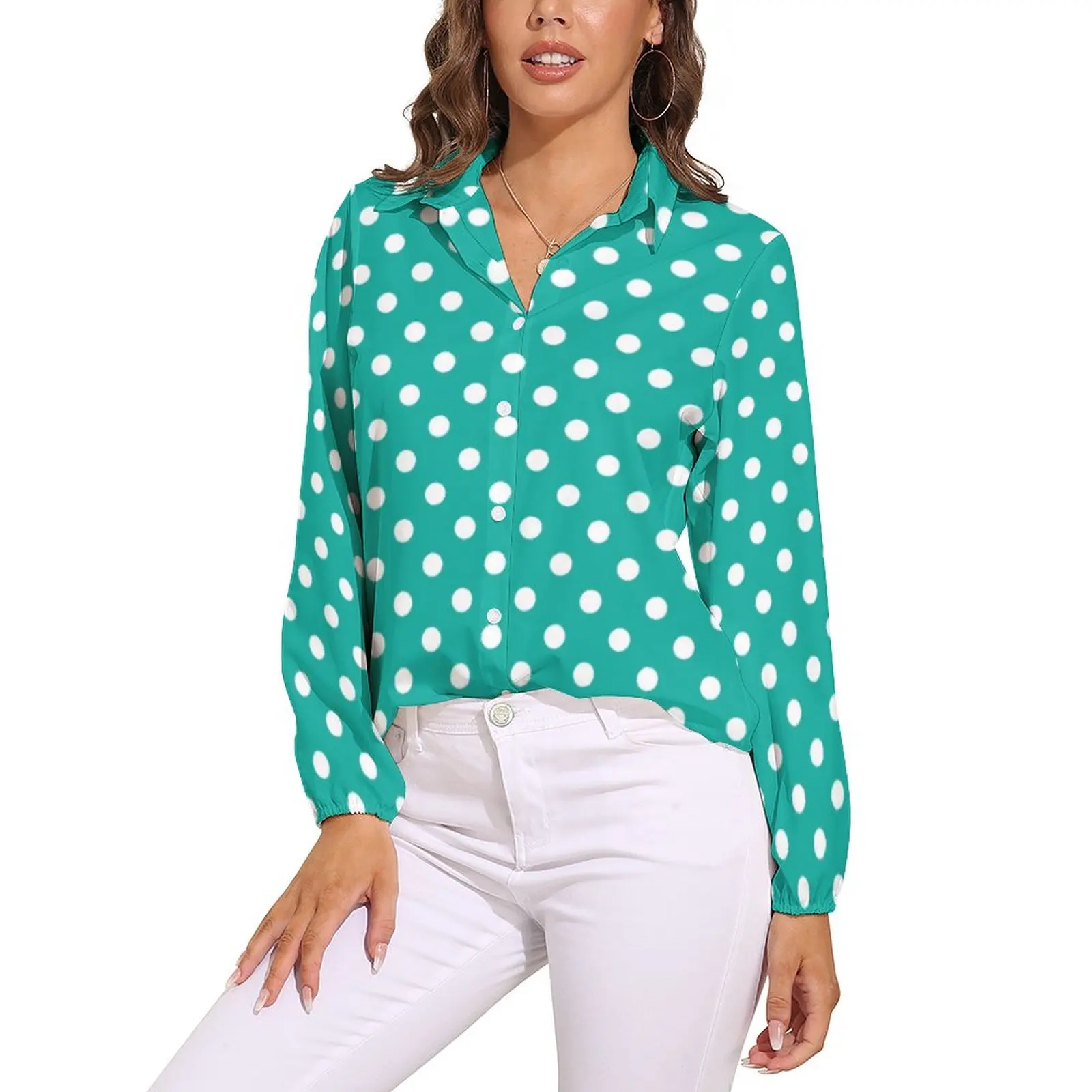 Отзывы о Белая блузка в горошек с длинным рукавом милые пятнистые принты модные блузки