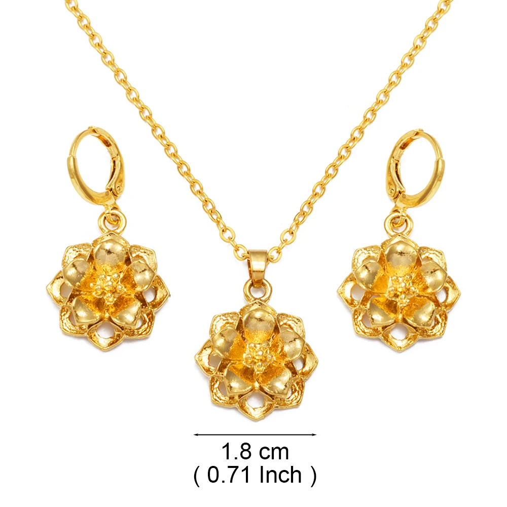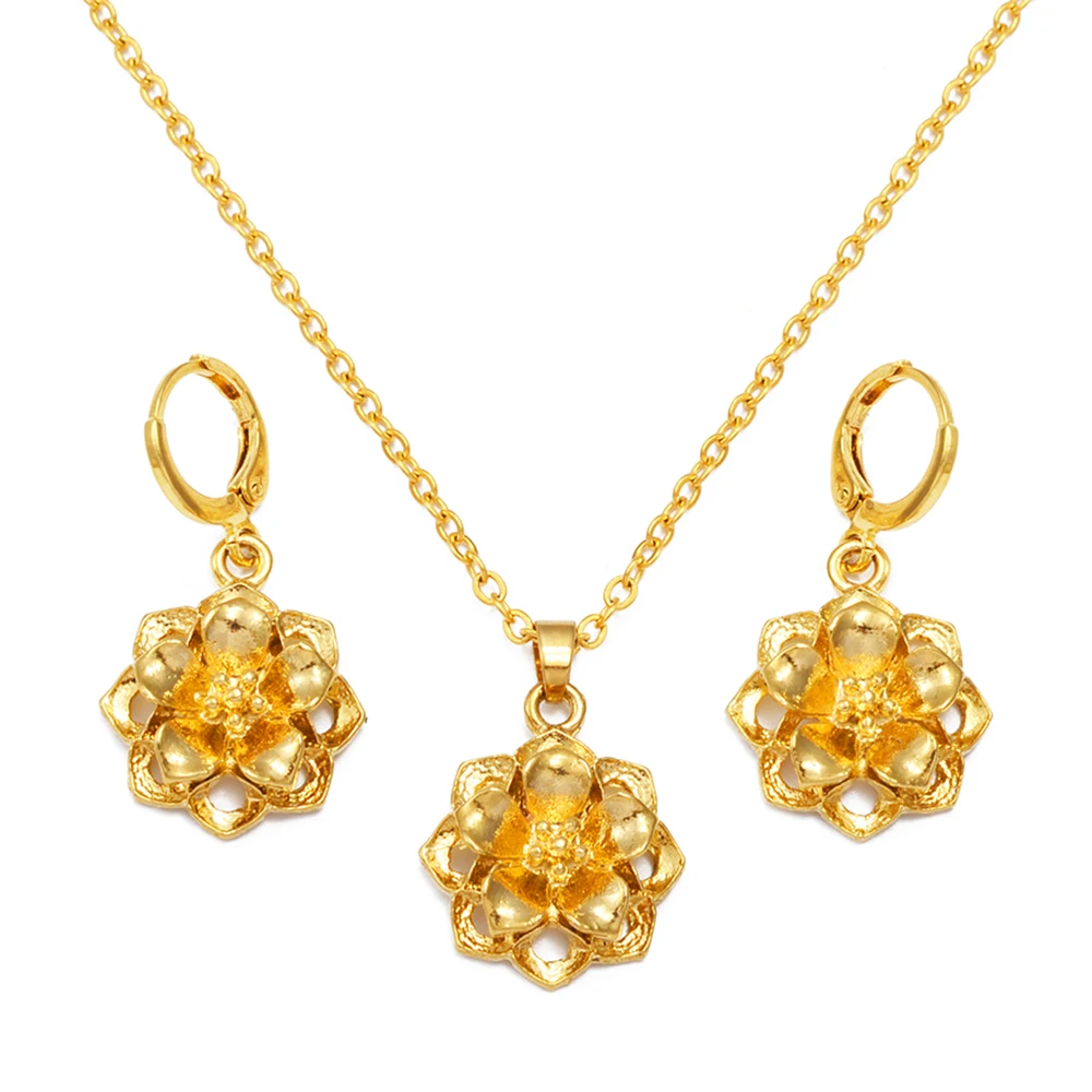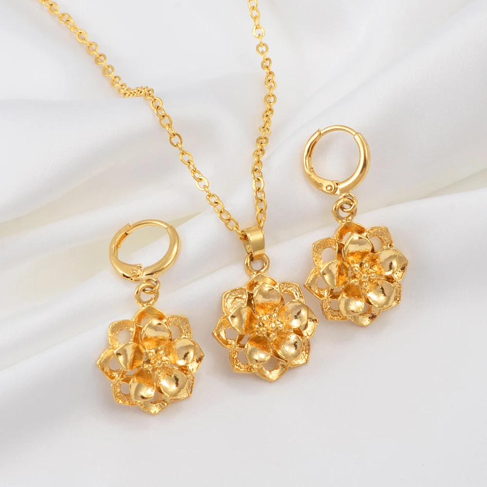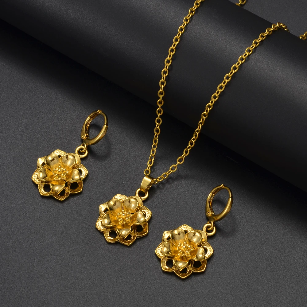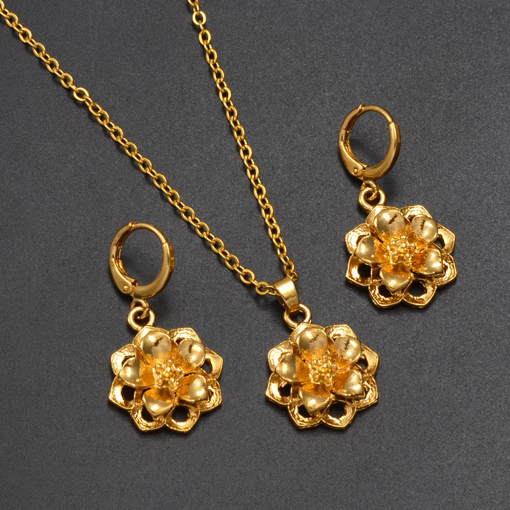 Anniyo позолоченные цветочные наборы ожерелья серьги для женщин девушек - купить