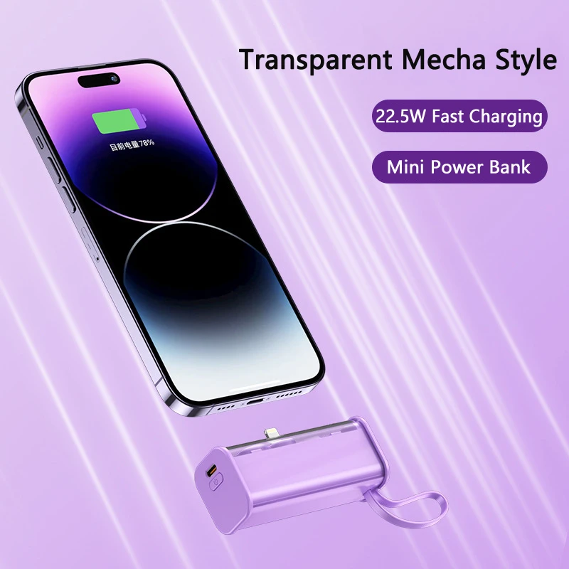 Прозрачный Внешний аккумулятор 5000 мАч со встроенным кабелем и штекером 22 5 Вт - купить