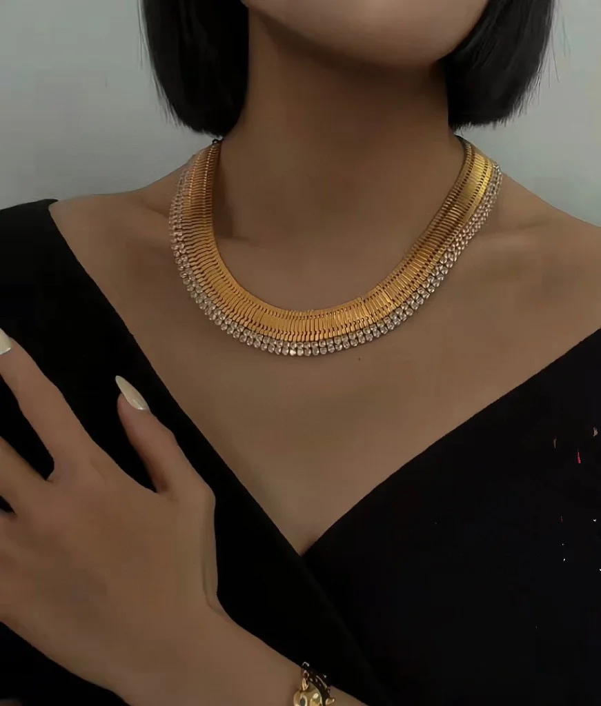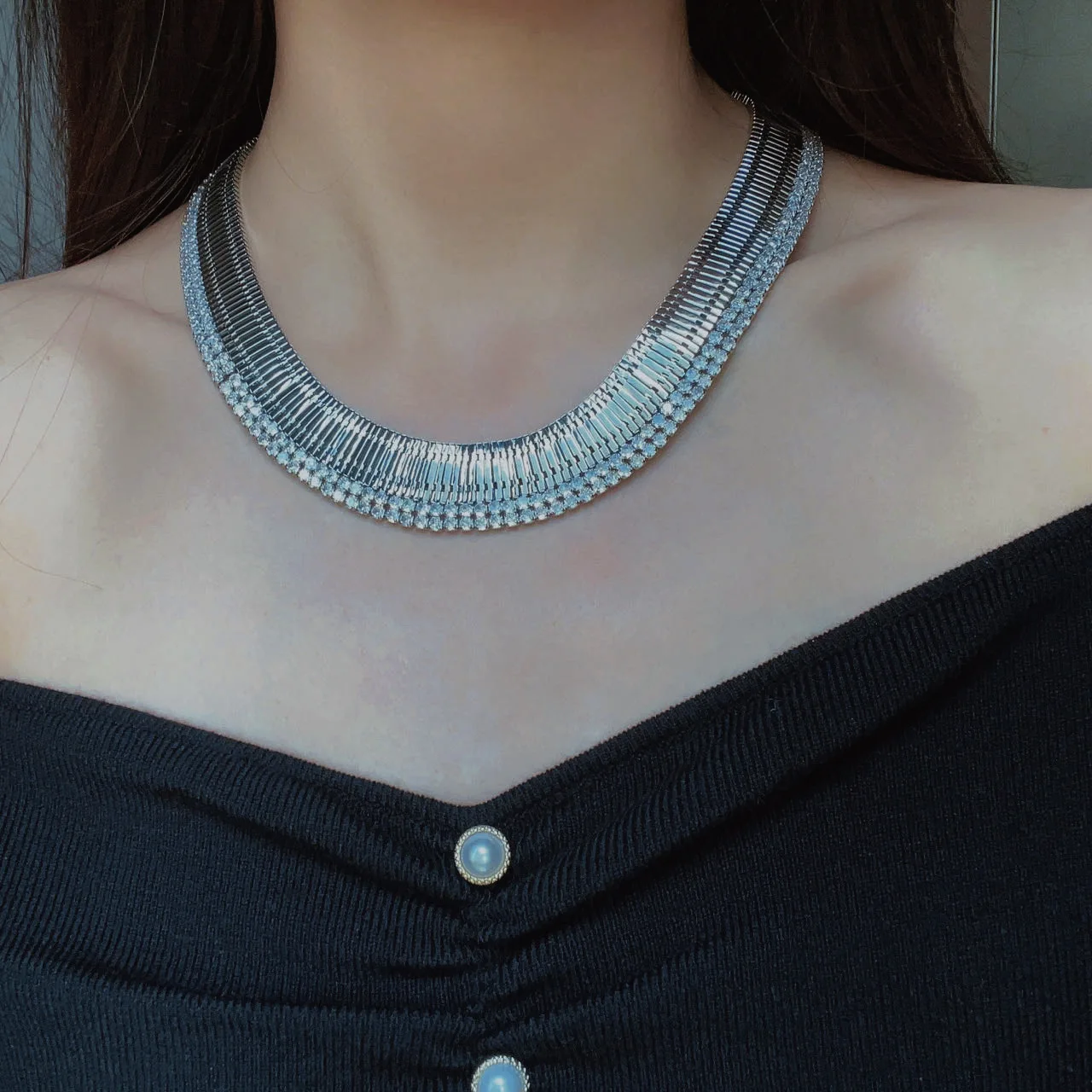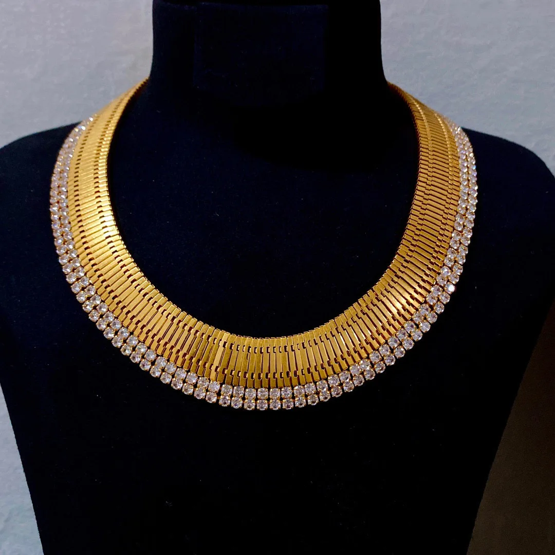 Отзывы о Роскошное широкое металлическое колье с кристаллами огромное ожерелье широким